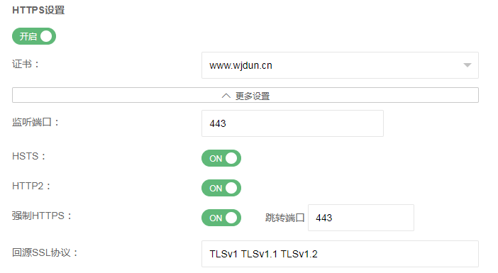 回源域名:默认为访问的域名,即客户通过www.wjdun.cn访问网站,回源也使用www.wjdun.cn,也可以自定义成其它的域名