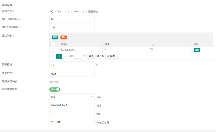 协议:目前只支持http协议的检查,所以回源协议只能是http