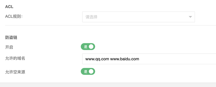 防盗链:在允许的域名输入域名后,只允许这些域名引用此网站的资源,或者可以允许空来源