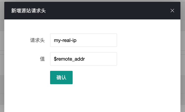 源站请求头:即在回源时,附加一个请求头回源。系统默认传X-Real-IP请求头,值为客户端的IP给源服务器。也可以设置其它的请求头,附加客户IP,如