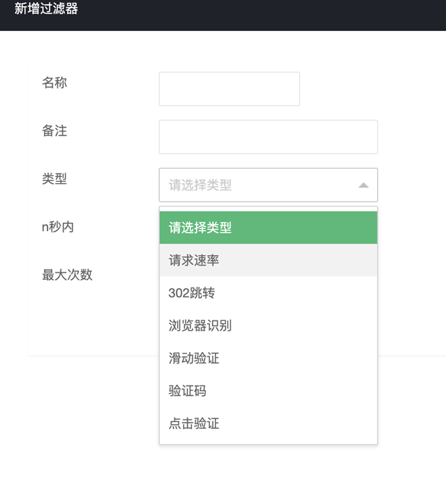 当指定两个过滤器时,即指定过滤器1和过滤器2,那么当过滤器1验证失败,这时还不会执行动作,而是继续使用过滤器2验证,只有当两个过滤器都验证失败时,才执行动作。这样可以有效减少误封,比如过滤器1使用请求频率,过滤器2使用滑动验证,这样可以防止误封请求量比较大的客户