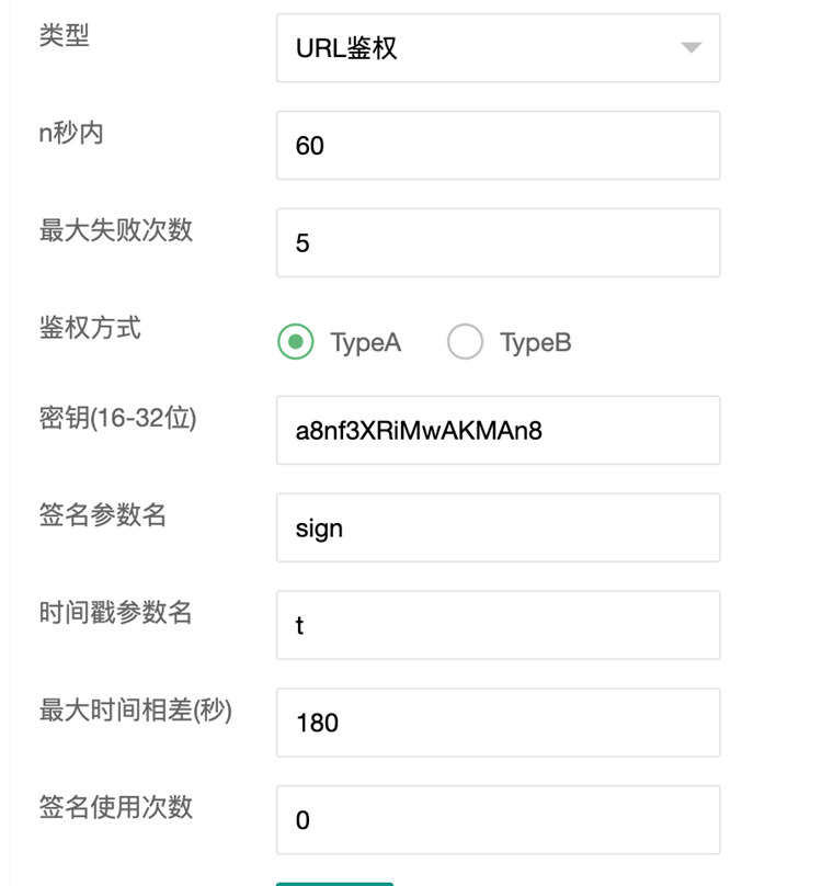 签名使用次数:带同一个签名的url允许访问的次数,0为不限制,越过限制则拉黑IP